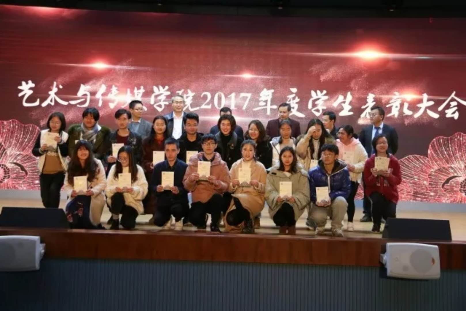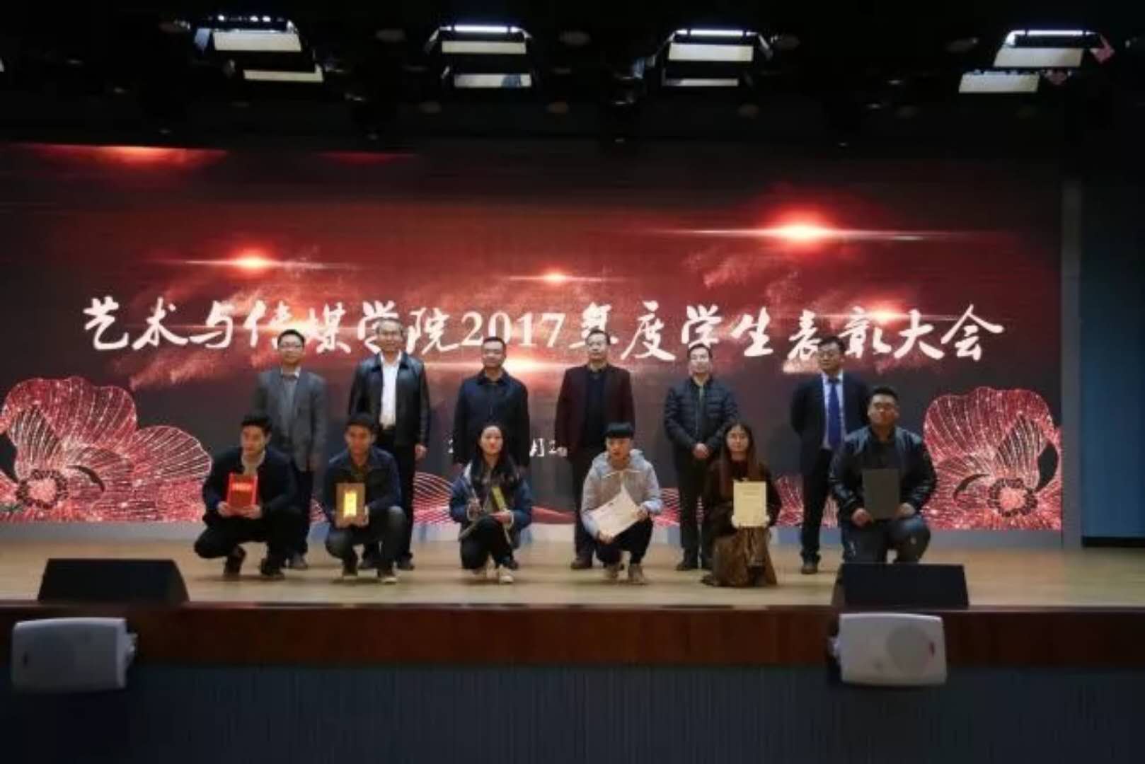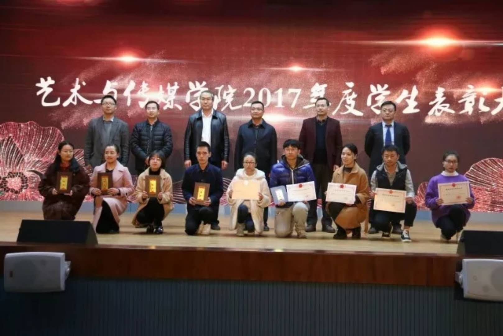2017年度学生表彰大会于12月29日17:40在昆工小剧场顺利召开。本次大会对2017年度国家奖学金、省政府奖学金、省优干、省三好学生、省级以上专项奖等先进集体和个人进行了表彰。出席本次大会的有学院党委书记孙刚、学院党委副书记严波、副院长王勇、副院长张建国、院长助理李怀苍、院长助理崔颖、学工办主任郝儒梁、团委书记桂巧玲、全体辅导员、获奖学生以及艺传院大一的同学们。