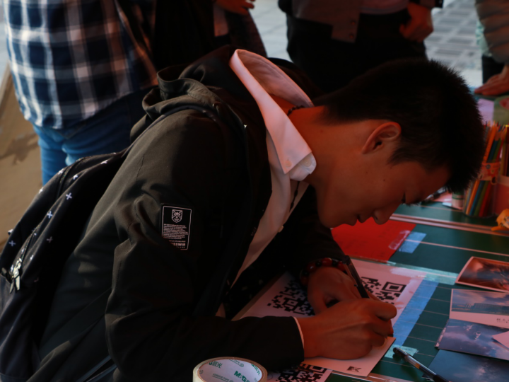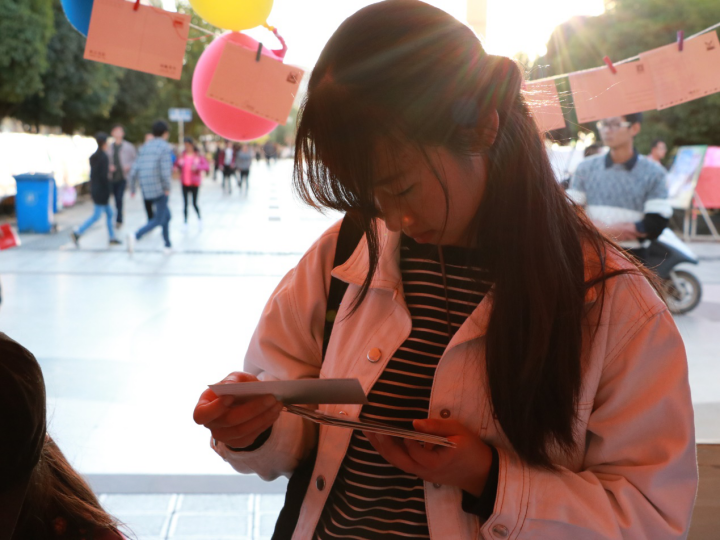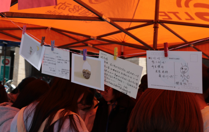 新媒社和青协在怡园食堂门口举办了的“爱无声·感恩包邮”活动,通过寄写明信片的形式,为同学们提供了一个方式,去向想感谢的亲人、挚友、老师…..寄写一份感恩问候。