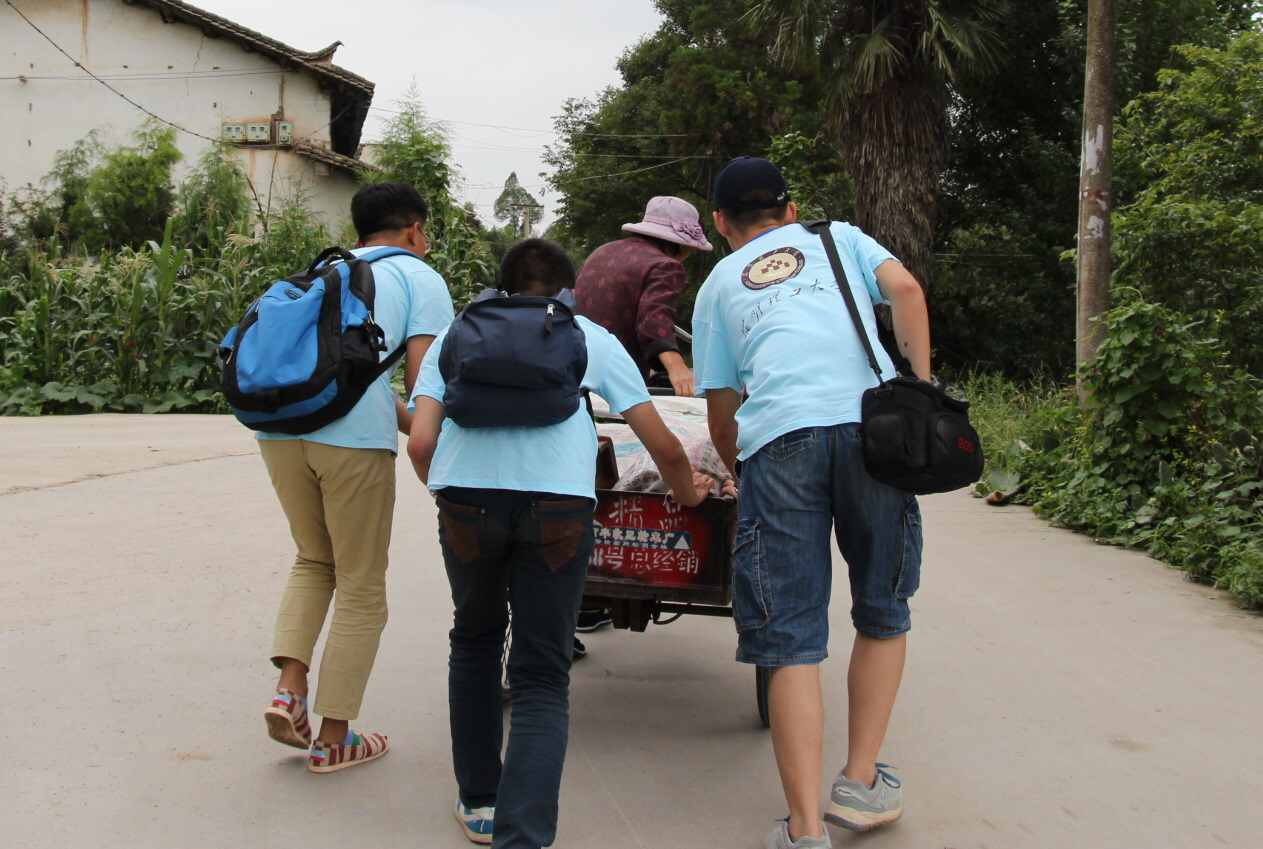 在七天的时间里,志愿者们与村民同吃同住,深入当地村落一一走访了生活条件艰苦的空巢老人。通过走访了解到,随着城市化建设的不断推进,农村家庭子女为了改善自身生活条件或追求更好的发展机会进入城镇工作,故而空巢老人由于缺乏子女的照料,其生活状况令人担忧。服务队在走访过程中一方面在精神上给予陪伴,通过交谈来排解他们的孤独感,使他们感受到志愿者们的热心。一位盲人老奶奶说:“谢谢你们为我做了这么多,你们的帮助也让我的孙女有了更多考大学的动力。虽然我看不见,但我能感受到你们的爱心。”另一方面志愿者充分了解他们在生活上遇到的困难,切实反映他们的需求,并力所能及地为他们进行解决。例如帮助老人推车、去河边提水、暴雨天护送老人出行、帮老人做家务、干农活等。在一次走访中,志愿者看见老奶奶家门前的泥台阶松动了,为了安全起见,志愿者们用水泥为她砌了一个新台阶,并叮嘱她保重身体,注意安全。
