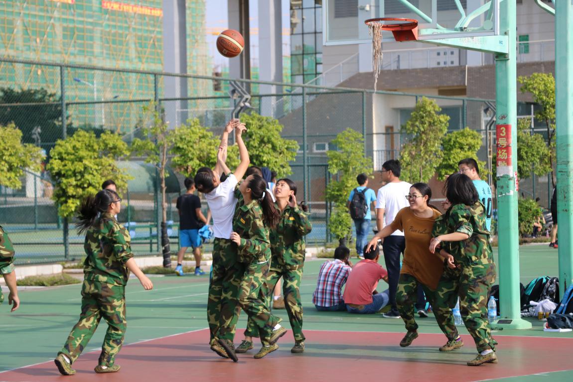 一声哨响拉开了比赛的帷幕,也调动起了所有观众的热情,加油声此起彼伏。场外的加油声更是为场上的运动员打了一剂强心针,他们越战越勇,赛况异常激烈,比分你追我赶,看得场下的人都热血沸腾。教官们不仅会打拳,打球也很有一手,丝毫不亚于这些小年轻们,但我们的张老师和男同学们同样也不甘示弱,比分几次打平。再来看女生场,巾帼不让须眉,虽说是女生,但是依然很拼命地在打好每一个球,想为自己的连队争一份荣光。40分钟比赛很快过去,激烈的角逐中教官队还是略胜一筹,21连女生也获得了胜利。