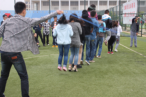 此次活动共有四个组,学习部和体育部一组,办公室和生活部一组,宣传部和文艺部一组,组织部与外联部一组。活动一开始就进行了热身游戏“谁在幕后”。虽然只是热身游戏但却充满了欢乐与笑声。幕布拉开的一瞬间,参赛者那惊讶茫然的表情惹得观众捧腹大笑。在“十人九足”的这个游戏中,刚开始,队员之间的配合都不是那么默契协调,有摔倒的,但是他们丝毫不在意。重新站起来调整一下自身状态,最终也取得了比较好的成绩。
