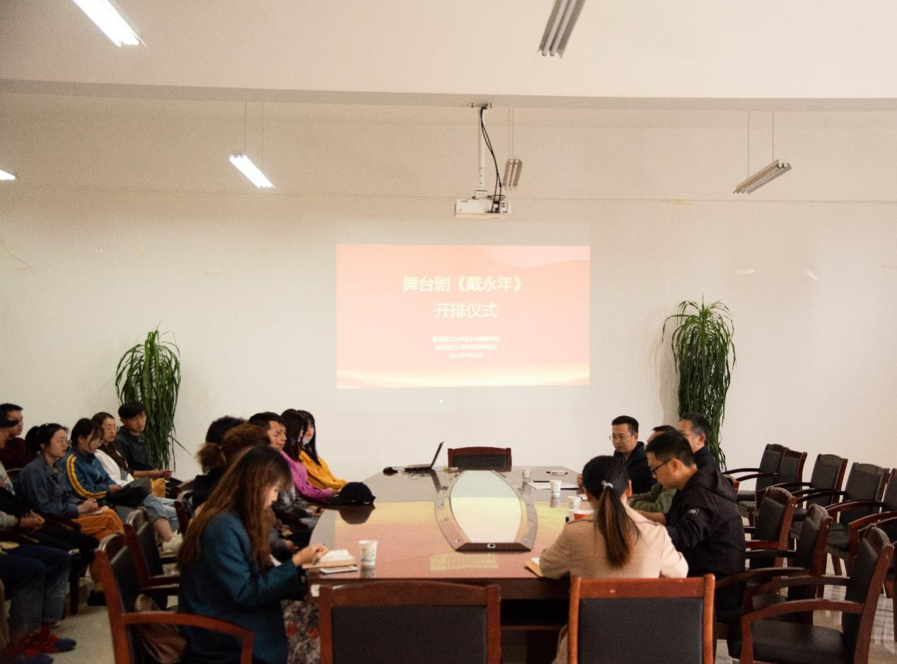 在公教楼209室举行舞台剧《戴永年》开排仪式。学校党委宣传部部长聂磊、艺传院党委书记孙刚、学院党委副书记严波、学院院长助理崔颖、学院团委书记桂巧玲和学生秀异剧社指导老师倪崑皓参加了开排仪式。活动由严波副书记主持。