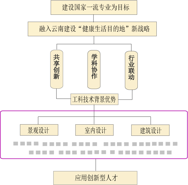 以建设国家一流专业为目标,融入云南建设“健康生活目的地”新战略,立足学校工科背景,以多学科共享协作、多民族文化融合,以艺术人文提升人居环境品质,以民族文化打造专业特色。培养服务区域经济发展建设急需的、掌握先进环境设计理论和专业技能、满足区域人居环境保护与建设需求的应用创新型人才。