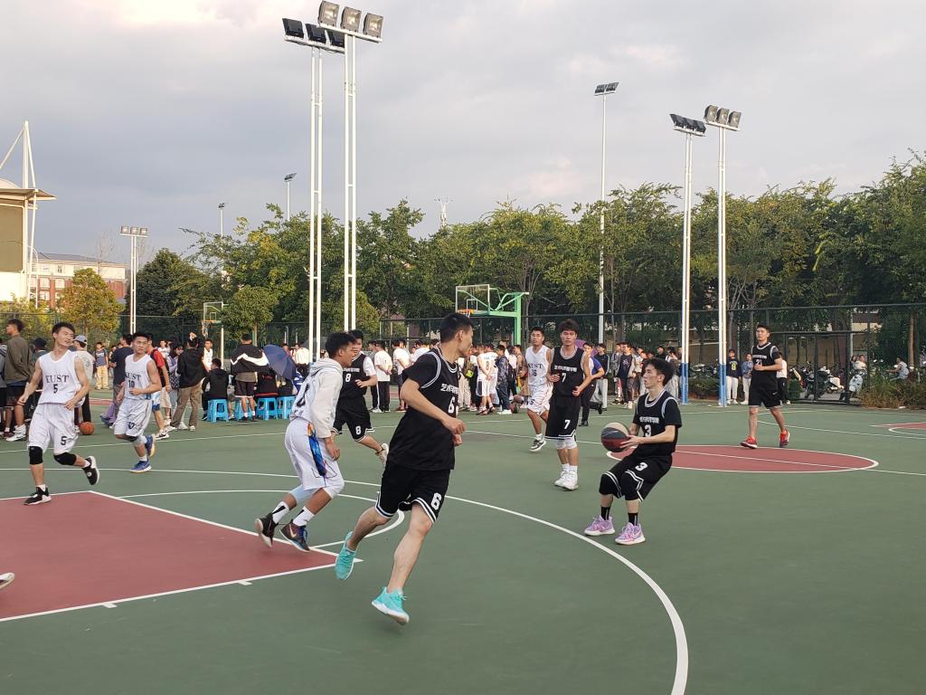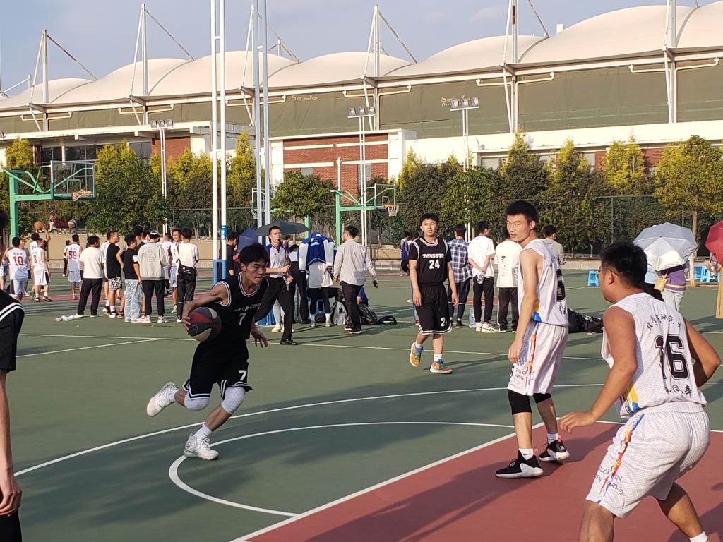 双方队员你争我夺,篮球在队员们的手中争夺着,汗水在赛场上燃烧。赛场下的啦啦队整齐有序的喊出响亮的口号,“艺传!加油!”“艺传!必胜”!赛场上的紧张气氛迅速蔓延。篮球一次又一次的被抛在赛场空中,一次又一次的投篮。