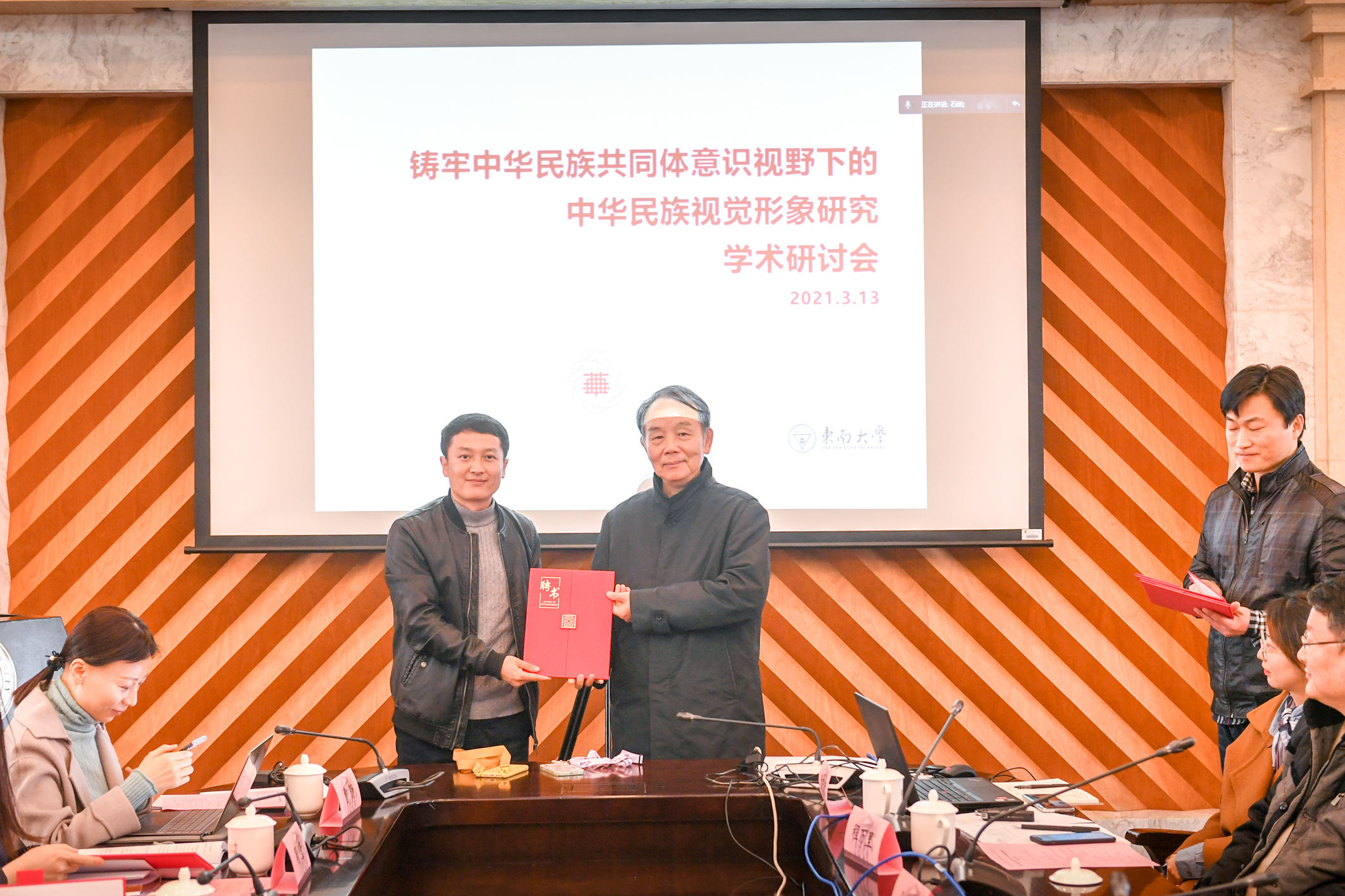 东南大学中华民族视觉形象研究基地主任王建国院士颁发聘书