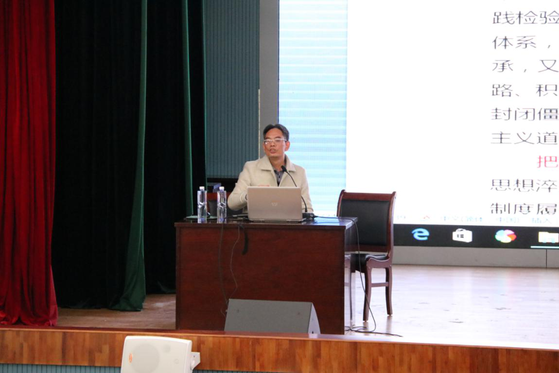 师生宣讲十九届四中全会精神。会议由学院党委书记孙刚主持,全院教师和学生参加此次会议。