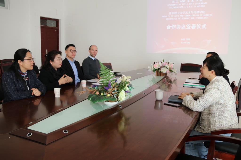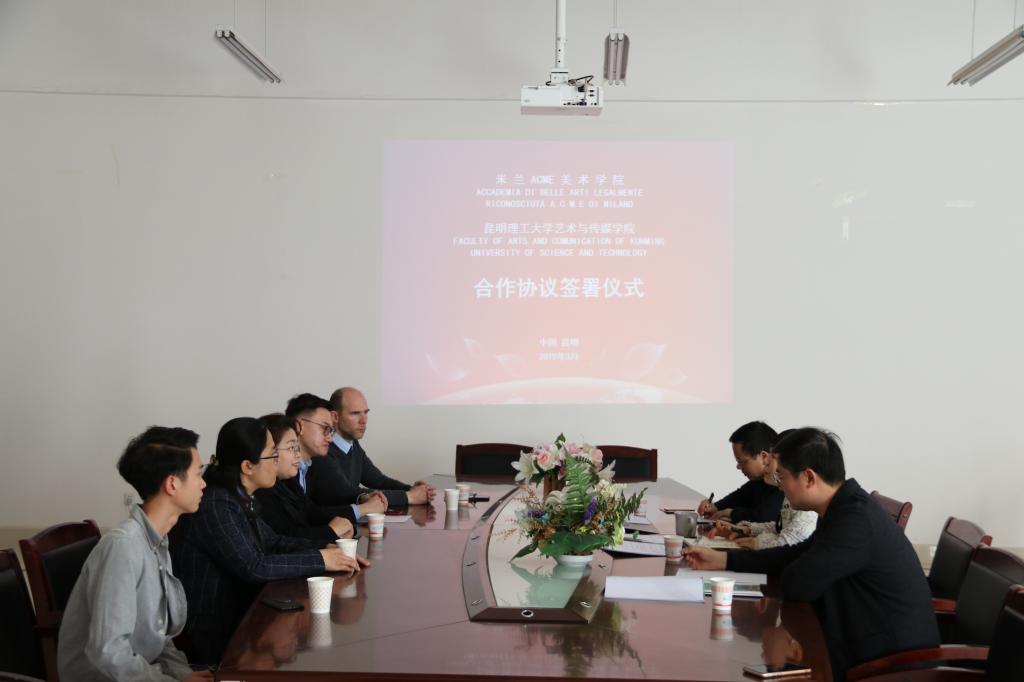 许佳院长、王勇副院长以及外事秘书田野老师与ACME美术学院院长等一行5人,参加了签约仪式,双方并进行了深入的交流。