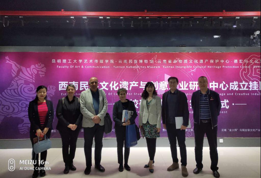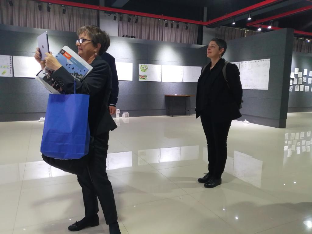在参观过程中,来自美术系的大四毕业生向来宾们介绍了毕业绘画作品的创作故事;西南民族文化遗产与创意产业研究中心主任张瑞副教授向来宾们展示了研究中心与云南民族博物馆合作的文创设计项目的学生作品;乡村振兴研究中心张建国主任则介绍了目前学院与成都、大理合作的景观规划项目。Manuela Croatto女士在参观了相关作品后表示意大利与中国同样具有悠久的历史文化,在艺术层面有着广泛的合作机会,双方可以在自身文化基础上相互学习、共同发展。许佳院长深表认同,同时也热切的欢迎乌迪内大学和厂长影视