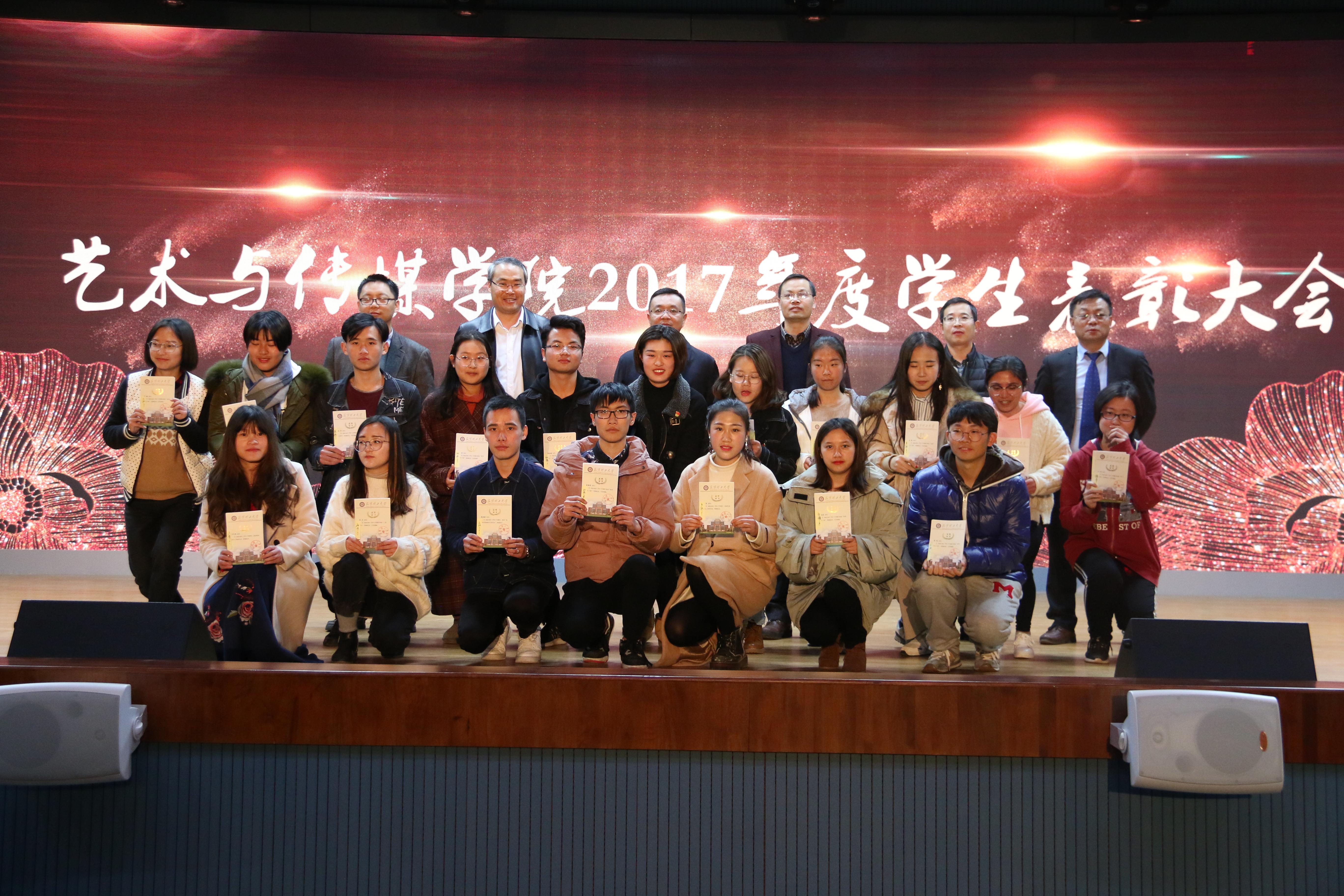 在小剧场召开2017年度学生表彰大会,对获得2017年度国家奖学金、省政府奖学金、省优干、省三好学生、省级以上专项奖等的先进集体和个人进行了表彰。