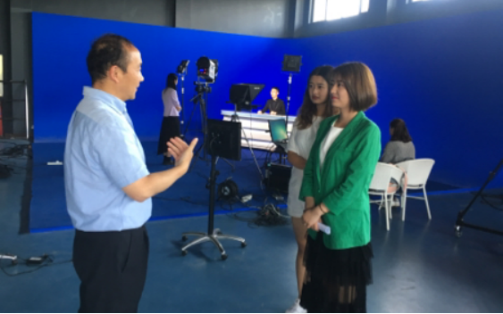 5月10日下午,周峰越副校长来到公教楼小剧场二楼演播室,检查厂长影视