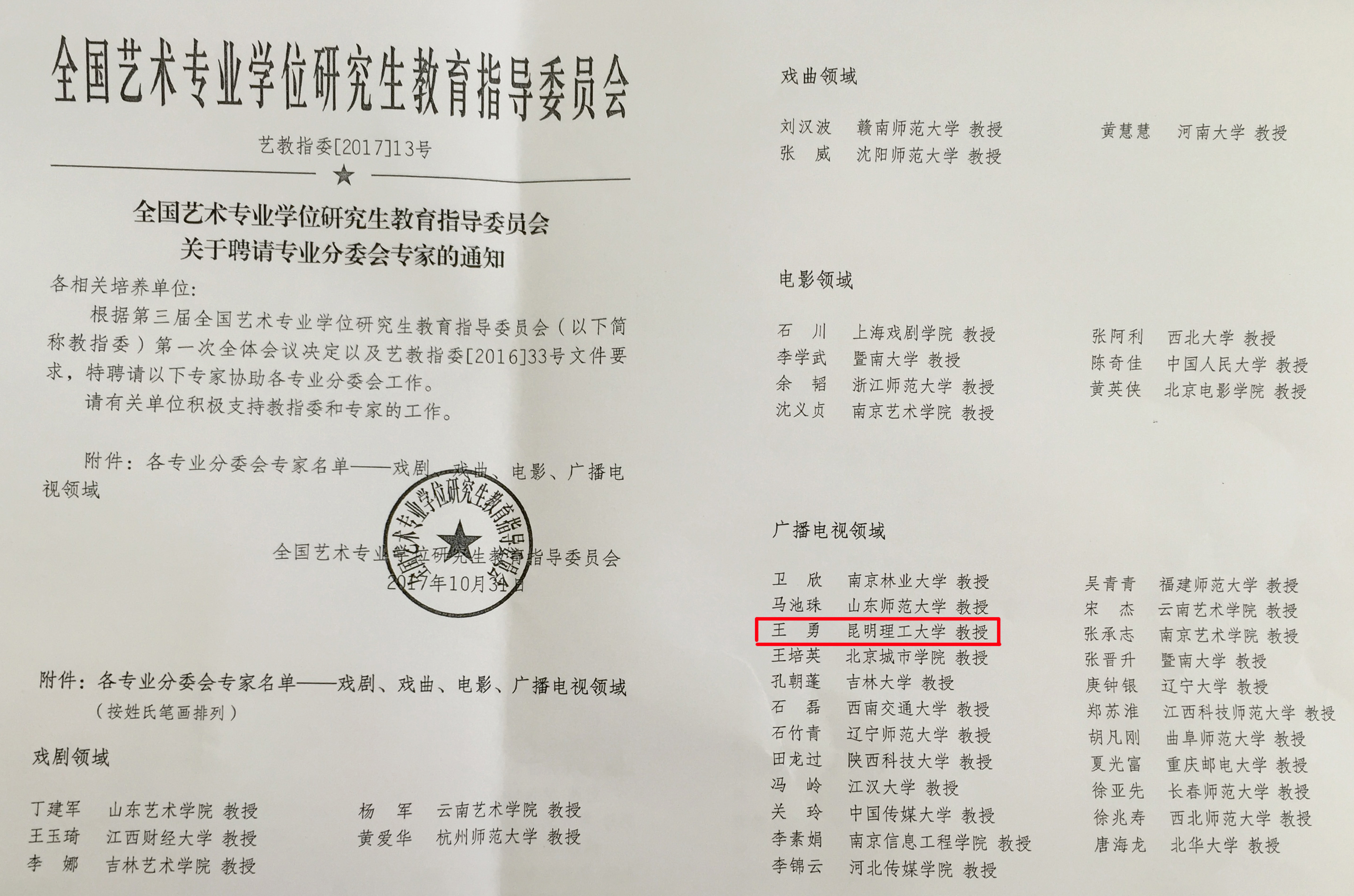 院长许佳教授、副院长王勇教授分别入选为全国艺术专业学位研究生教育指导委员会(艺术设计领域)、(戏剧、戏曲、电影、广播电视领域)专业分委会专家。分委员会专家是由艺术硕士教指委聘任,协助教指委进行艺术硕士专项评估、教育评价体系与认证体系建设、艺术硕士成果展示平台建设及成果审查等工作。