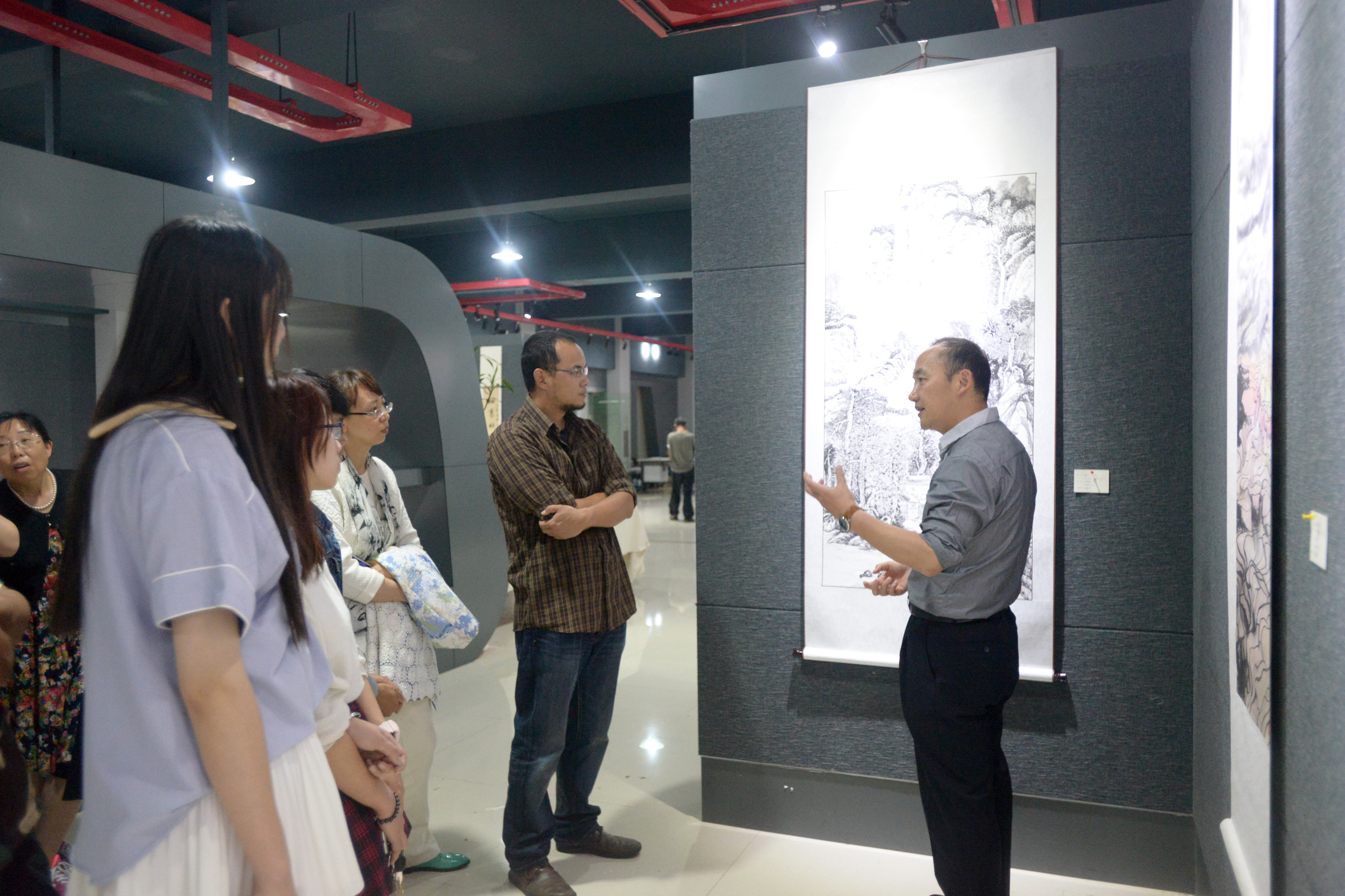 正在展出的绘画131班毕业作品“巡青”。绘画131班学生、绘画专业其它年级学生、美术系教师和艺传院党政领导聆听了周校的点评。
