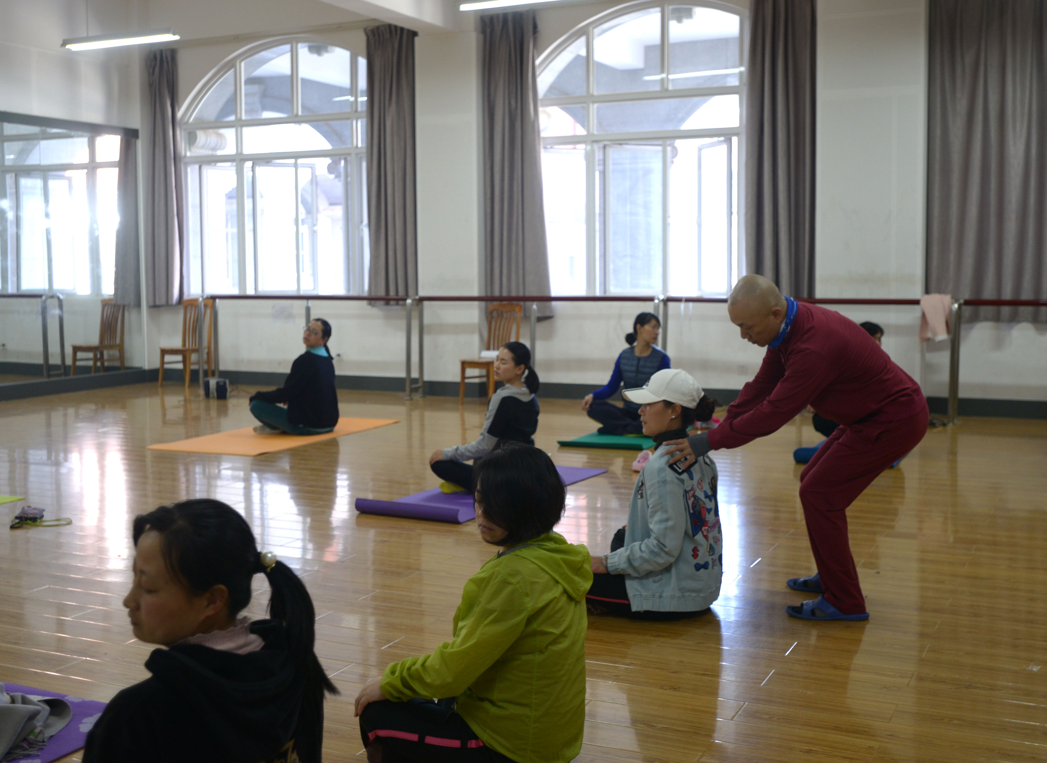 本学期,院工会聘请的是在北方健身界小有名气的瑜伽教练张龙老师。教工们在张龙老师的指导下,每次健身1小时。首先是10分钟的热身动作,充分活动手腕、脚腕、颈部、肌肉;接着是难度循序渐进的拉伸动作,最后是瑜伽休息术环节。张老师带领学员们充分的体验瑜伽,做腹式呼吸让学员们平静心情,示范每个动作,并教对学员逐个进行矫正。