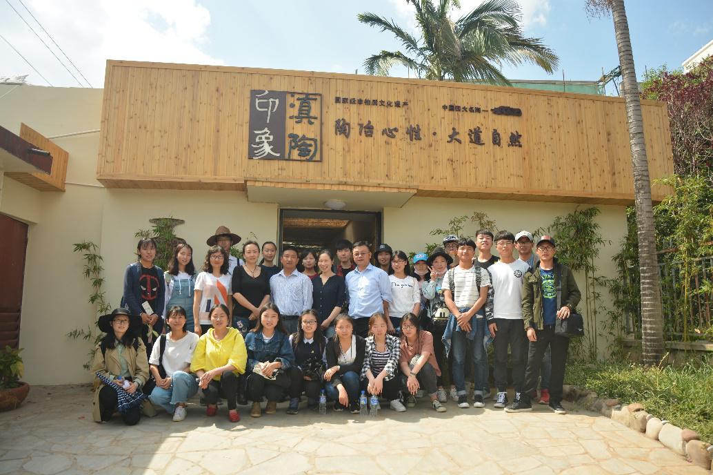 2017年4月7日,为完善毕业设计、并进一步了解命题企业的需求,艺传学院视觉传达系主任喻丽老师,广告学专业李怀苍、昌蕾老师,广告学13级班主任马小娟老师和广告13级全体同学赶赴建水,对建水“滇陶印象“企业及”启正陶艺公社进行了为期两天的参观,学习和交流。