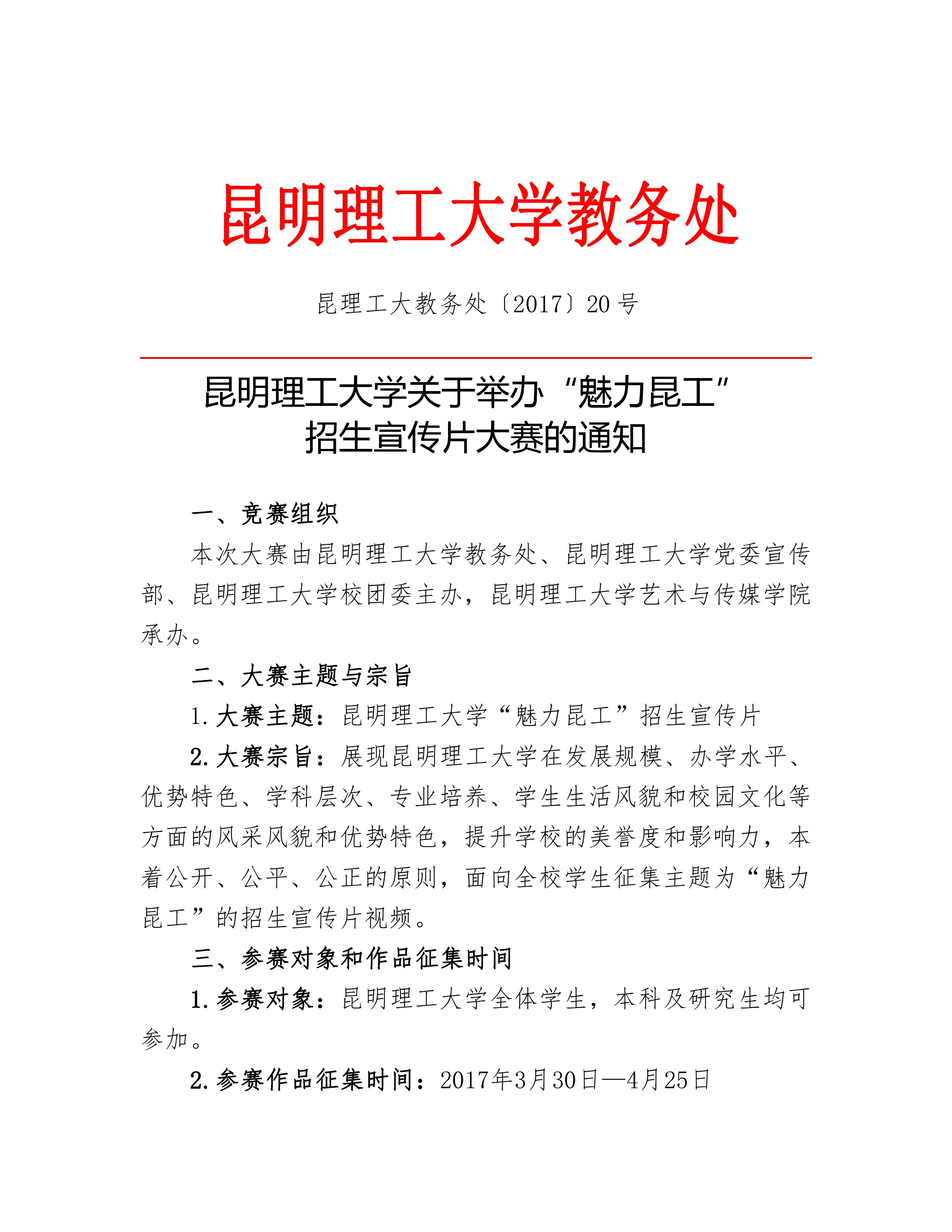 厂长影视 关于举办“魅力昆工” 招生宣传片大赛的通知
