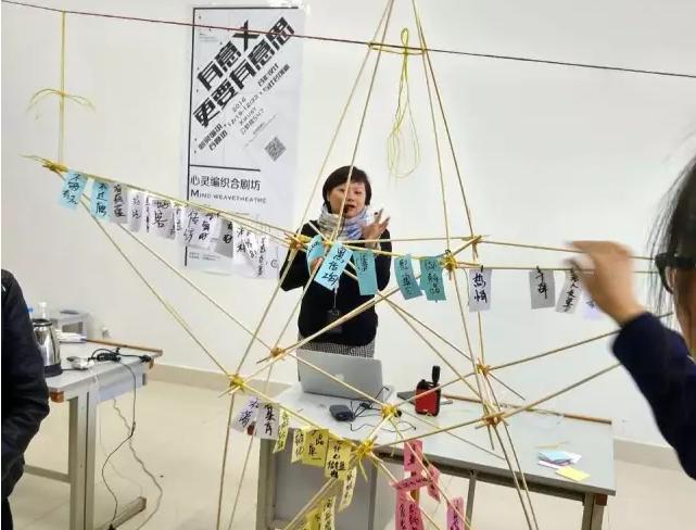 伴随着轻快的音乐,开启了心灵编织合剧坊第一天。这一天宗博士主要对设计主题,社会创新方式进行了概述,以一种编织的共同设计方式,让每一个小组对豆腐、过年、家乡的美好进行发散。最后全体师生在公教楼后的大草坪下,随宗老师一起以戏剧的方式,让创意开始“飞翔”。
