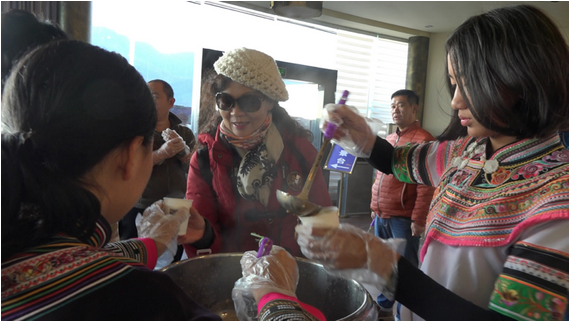 拍摄期间,巴老师带领学生同县粮食局的工作人员一起,特意在元阳哈尼族梯田景区早早的为前来观赏日出的游客免费送上热气腾腾的红米粥,也希望游客能从千年传统耕作的哈尼梯田稻作文化的结晶中,品尝出哈尼族人的智慧与热情,进而带动大家对哈尼族梯田世界文化遗产的推广与保护。