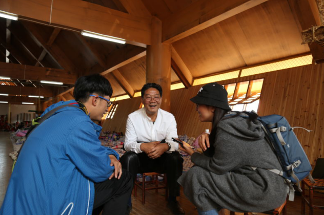 在木代房内采访景颇民族发展研究委员会研究员朵示老师(彭慧颖 摄)