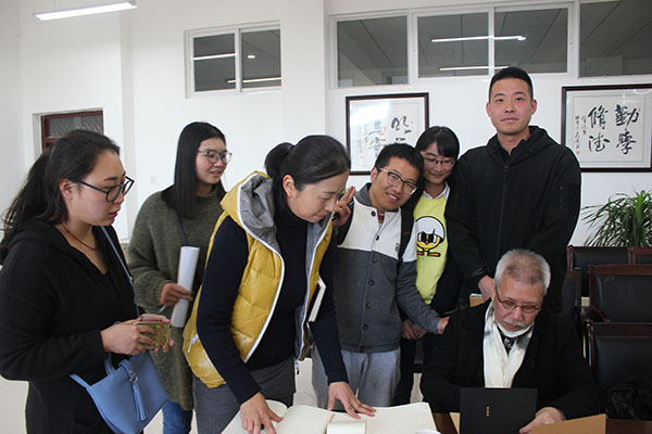 会议室,与学院老师作进一步交流。老师们谈了自己在设计教学、创作中的一些思考和困惑,请靳老指导,靳老很坦率地谈了自己的一些经验,老师们深受启发。