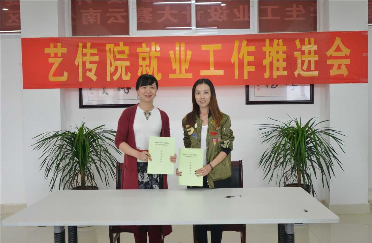 许佳院长与播音与主持艺术专业负责人孙雅萌老师签订“就业目标责任书”