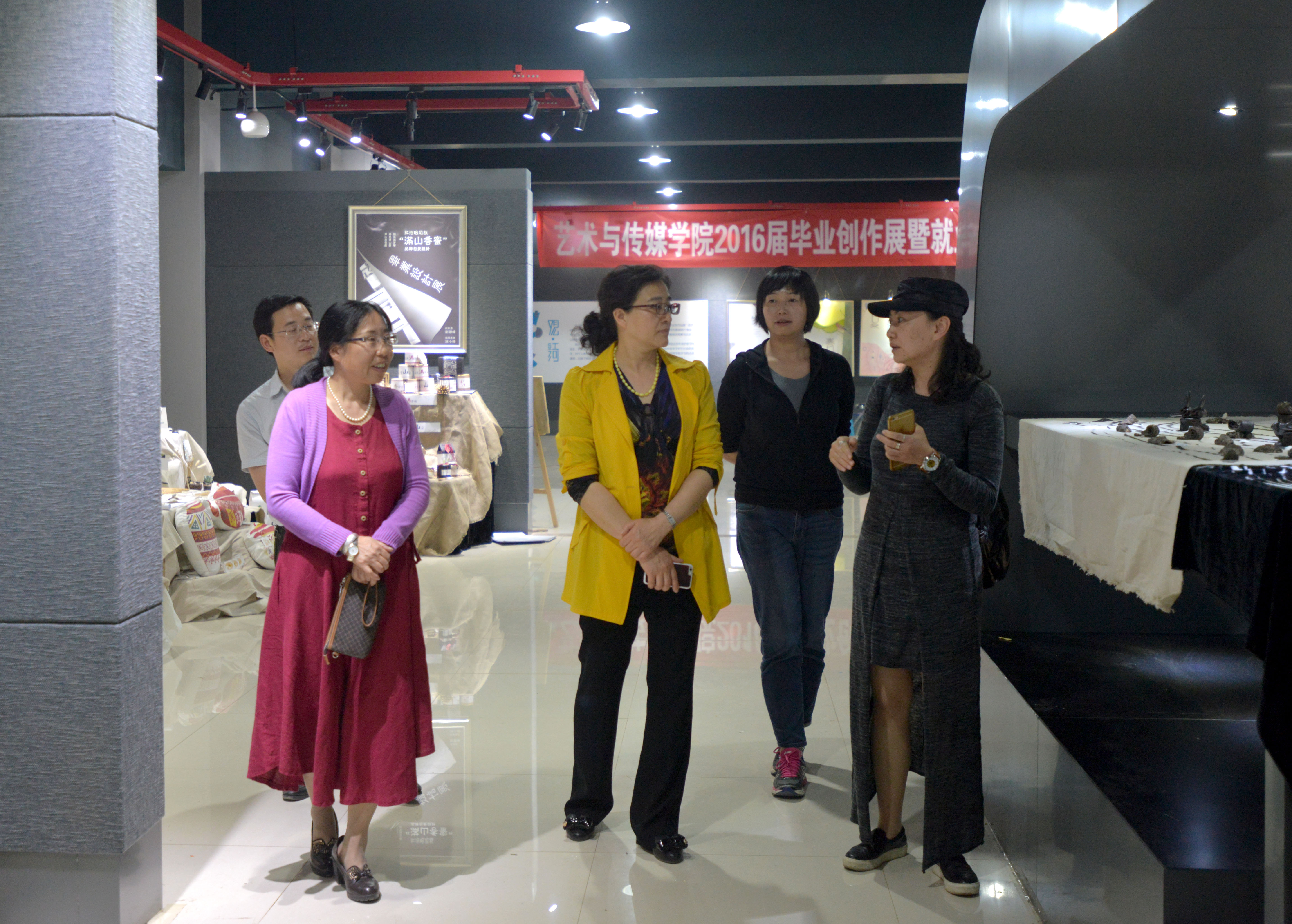 参观指导。领导们一致评价,作品展规模大、质量高,充分体现了教育教学、创新创意成果,同时也肯定了视传系老师在教学中的改革。
