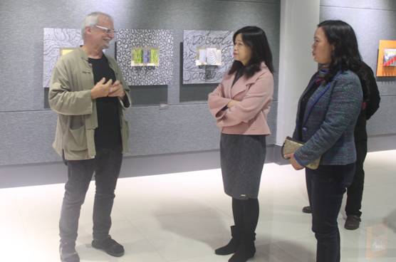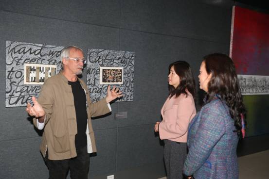 张校长用流利的英语与杨瀚松先生作了交流,希望他不断深入云南,了解云南的巨大变化,不断描绘希望。张校长叮嘱学院领导,要在美术馆举办更多优秀的艺术作品展,给我们学校的校园文化增添更多人文气息和艺术色彩。