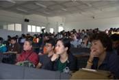 新闻传播系的各专业本科生以及广播电视艺术专业研究生们早早地来到学院公教楼129教室,满怀期待的等待刘小毅老师们的到来。杨璐老师主持本次实践教学活动,对其进行了基本的介绍之后,刘小毅老师向同学们展示了高速摄影器材拍摄的视频素材、航拍设备拍摄的昆明多地自然和人文景观以及水下摄影器材拍摄的工作花絮。