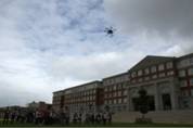 在为大家介绍了一些相关器材的基本知识之后,所有老师和同学们来到学院公教楼大草坪观看,学习航拍设备的设备构成、组装、调试以及升空操作并进行拍摄。刘小毅老师一边为同学们讲解航拍的注意事项和技巧,一边请工作人员进行现场展示组装。航拍主要分为分行和拍摄两个工作部分。航拍设备构成较为复杂,拍摄难度也较大,拍摄工作需要有经验丰富的“飞手”和摄像师共同协作完成,但是拍摄素材是独一无二的,也将会为影视成果带来不同的视觉体验。设备组装调试完成后,刘老师和助手们共同协作,操作航拍设备,通过无线接收显示器,向同学们展示了航拍画面的新视觉体验。