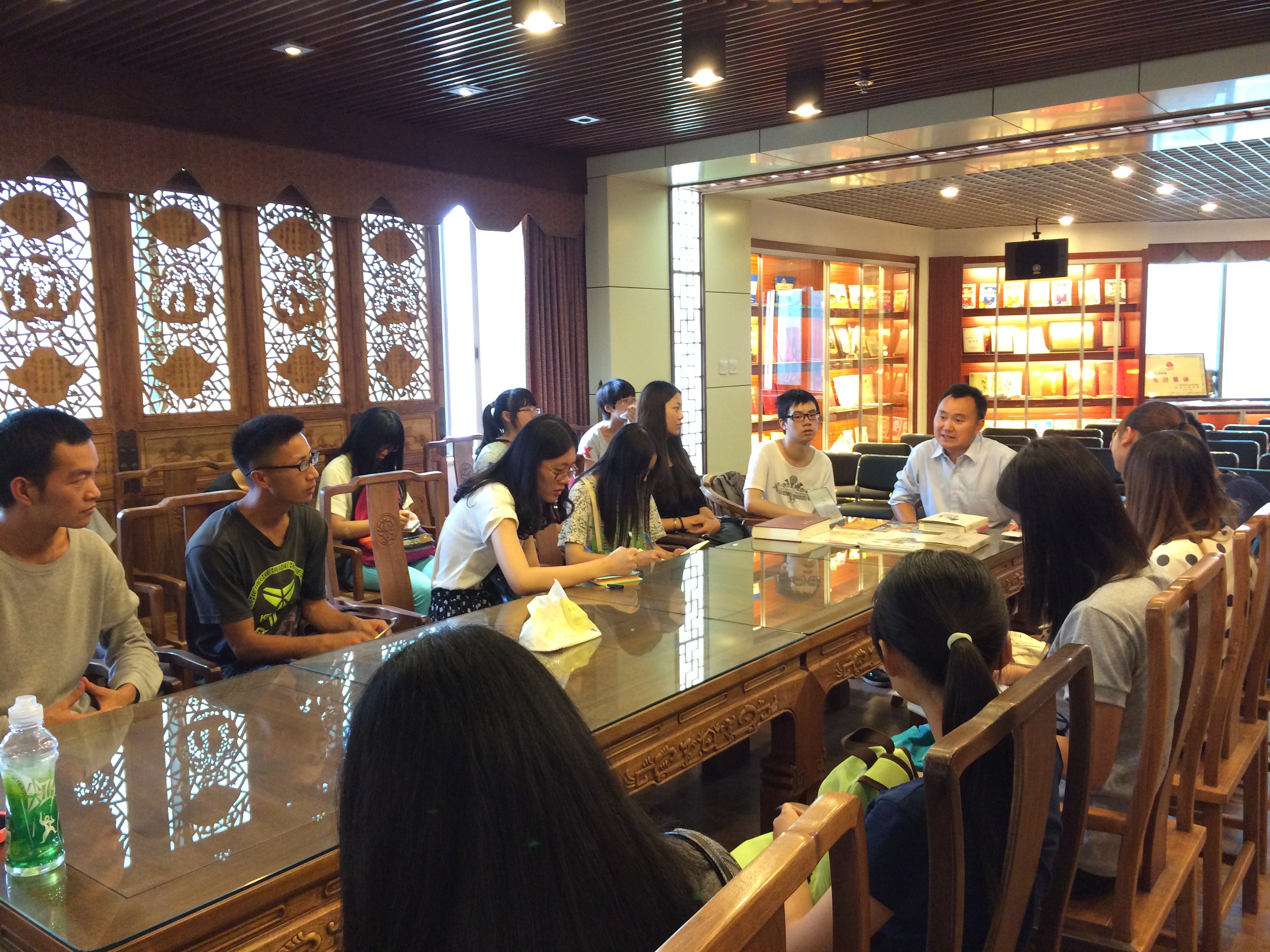 7月9日,新闻传播系2013级编辑出版专业为期两周的短前认知实习圆满结束,此次实习由吴肇莉和刘红两位教师带队,分别参观了昆明市图书批发市场、大象书店、麦田书店、昆明信息港、58同城以及云南省教育出版社等多家媒体单位。通过认知参观,学生们了解到目前云南图书市场的发行现状,独立书店的经营特色,政府门户网站及分类信息服务网站的内容建设特点,社交媒体的应用,手机媒体的发展趋势,图书编辑出版流程以及云南省数字出版现状等问题。在走访媒体单位的过程中还和云南信息港编委会副总编宋建波,视频中心主任王黎媛,彩龙论坛编辑喻军垒,58同城市场部经理钱军,招聘中心经理鲁学香以及云南省教育出版社副社长赵虎等业界人士就新媒体环境下编辑出版人员的编辑能力、专业素养等问题展开了深入地交流互动。
