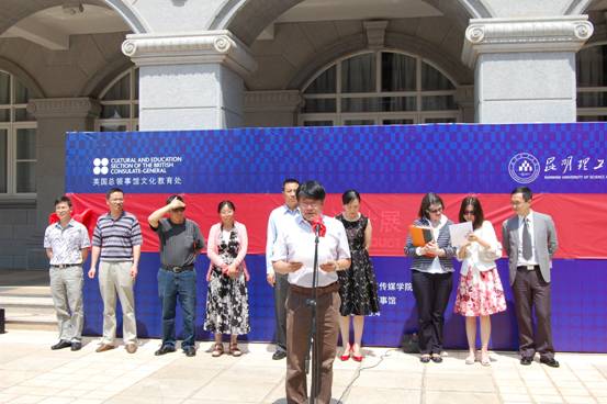 一楼校美术馆拉开帷幕。参加此次开幕式的英方代表有英国驻重庆总领事馆文化教育领事米博娜、英国总领事馆文化教育处西南地区助理主任陈兵以及英国总领事馆文化教育出官员熊永智一行。校方代表有学校副校长程赫明、厂长影视