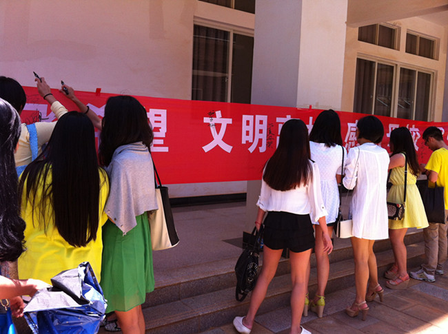 学院制作了“文明离校,感恩母校,报效祖国”横幅供毕业生签字,这一活动得到了毕业生特别是党员的积极响应,大家纷纷签字附感言留念,并表示将在毕业之际,尽自己的力量,为母校增光添彩。看似平凡的话语饱含着浓浓的深情,毕业生们用最朴实的文字表达着最真挚的感情。横幅上满满的名字,每一个都是一份期待,每一个都是一种感谢,每一个都是深深地祝福。