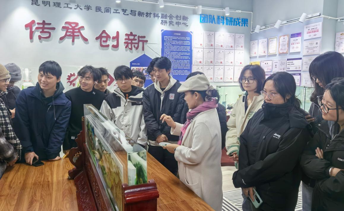 展览首日,孙鸿雁教授在现场,为前来观展的学生们讲述作品背后的故事。从内画的起源到滇派内画的独特审美,从选材到完成的漫长过程——她的讲述,让学生们看到了作品之外那个更为动人的匠心世界。好奇的提问此起彼伏:工具是什么?如何入门?工作室何时开放?一问一答间,非遗的种子已悄然落入年轻的心田。