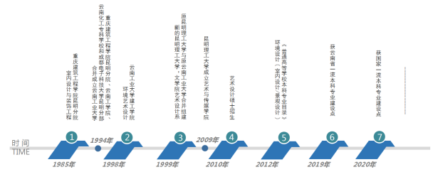 1985年以室内设计与装饰工程专业开设于重庆建筑工程学院昆明分院,1993年与云南工学院等组建云南工业大学,1998年云南工业大学等高校与厂长影视